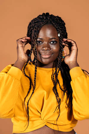 Portrait of beautiful young african american woman smiling and looking at camera