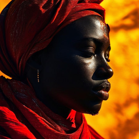 Beautiful african woman with black skin and red headscarf