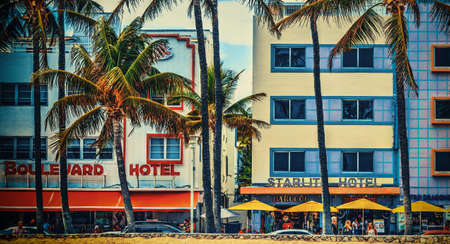 Miami Beach, USA - February 26, 2019: Famous Boulevard and Starlite Hotels in South Beach