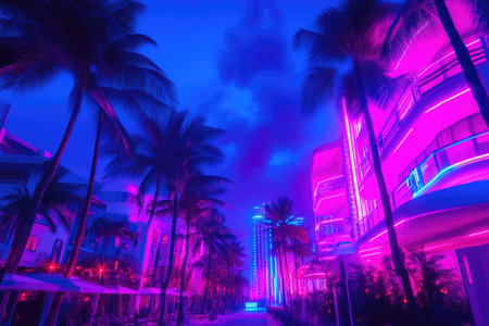 Experience Miami's pop art charm in this hyper-detailed cityscape, created with Generative AI.