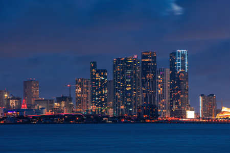 Downtown Miami buildings after sunset. Beautiful city skyline.