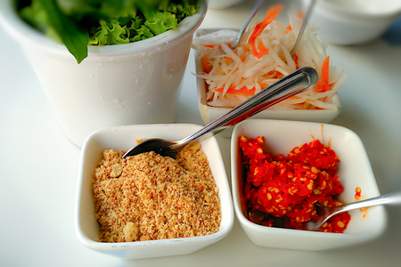 Herbs condiments for put in sauce for eat shabu, close up