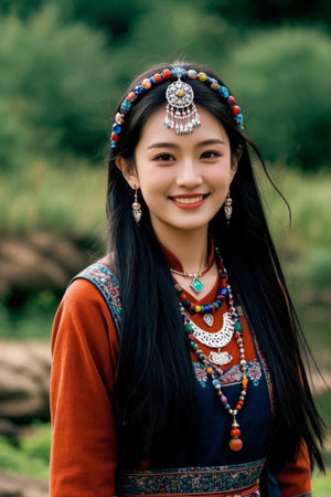 The smile of a girl with ethnic style, the beauty of gorgeous ethnic costumes