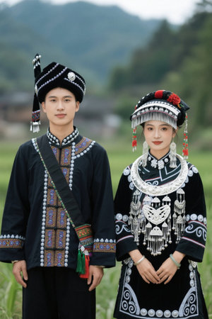 Chines Miao woman wearing traditional clothes in Xijiang Qianhu Miao Village (One Thousand Household Miao Village) , in Guizhou province of China.