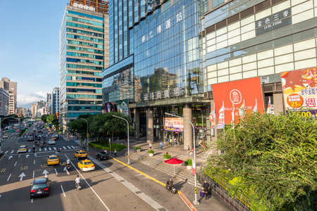 Taipei, Taiwan - May 16, 2019: Fabulous view of Xinyi Road on sunny day. Day traffic of Taipei. Scenic cityscape. Taiwan is a popular tourist destination of Asia.