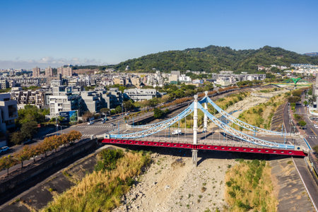 Taichung, Taiwan - November 28th, 2019: aerial view of modern bridge at Taichung City, Taiwan, Asia