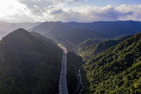 Morning aerial view of the beautiful Shiding District area at New Taipei City, Taiwan