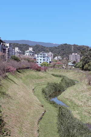 Taipei, Taiwan, 11 April 2022: Huangxi hot spring recreation area in Yangmingshan national park