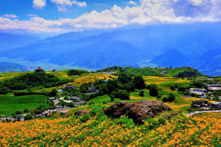 Orange Daylily flower fields in the sightseeing sport of Hualian county, Taiwan.