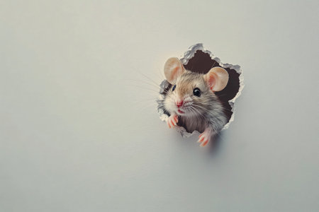 cute mouse and hole on the white wall with copy space