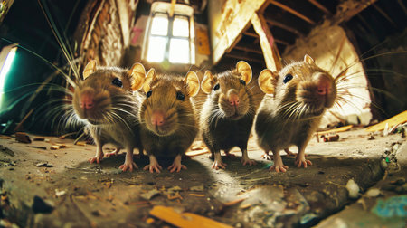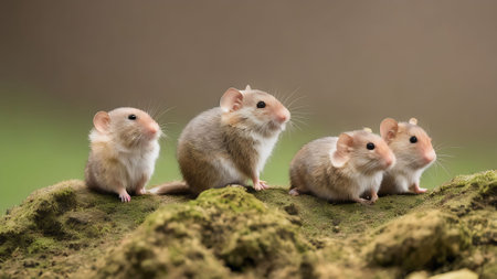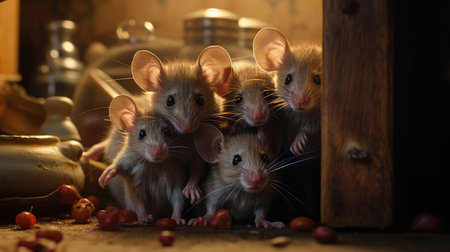 Group of Mice in Dramatic Red Light Among Flowers