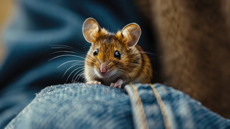 A small rodent with its whiskers twitching sits comfortably on the leg of a person, forming an unlikely bond.
