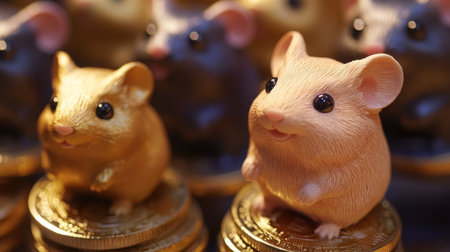 Gold and brown hamsters on coins in vibrant setting