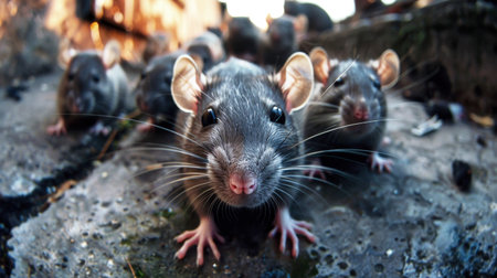 3d rendering of a group of rats in a garbage dump.