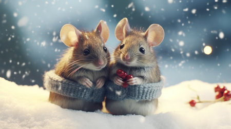 watercolor Christmas mice in winter
