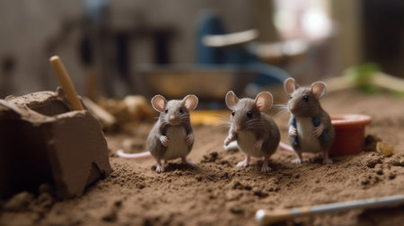 A group of mouse on a construction site. Selective focus.