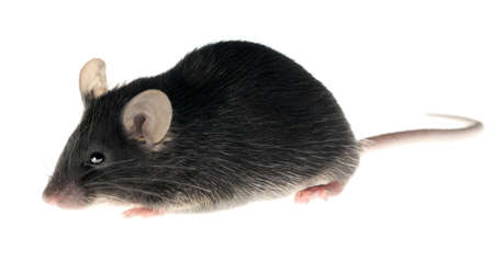 Black laboratory mouse, adult female, isolated on white