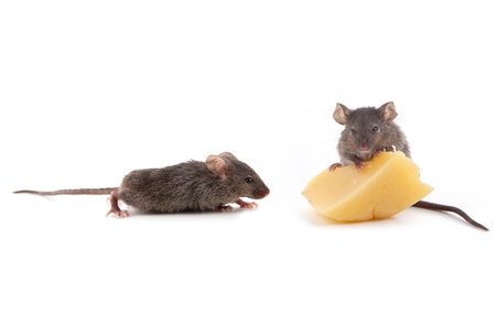 Mouse and cheese isolated on a white background