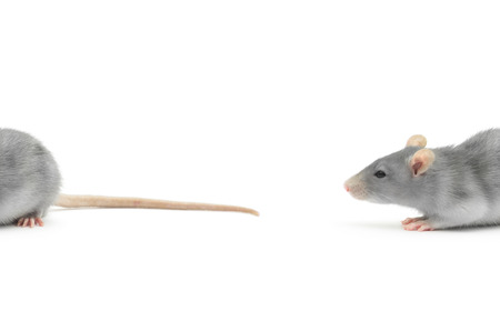 Portrait of two domestic rat on a white background