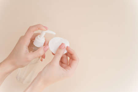 Hand disinfection. Hygienic cleaning liquid , covid 19