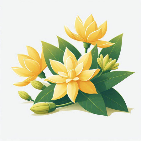 Beautiful Flower, Illustration of White Michelia Alba Flower or Michelia Champaca Flower on the white background.