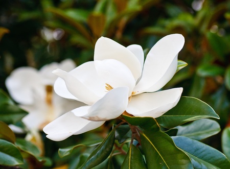 White Magnolia flower on tree.