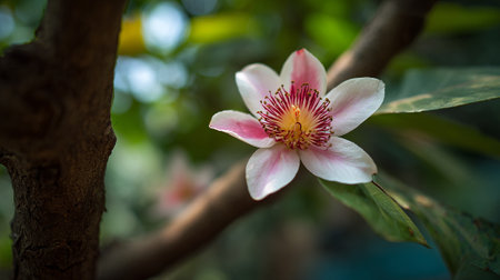 Delicate Gustavia gracillima Blossom Blooming on Tree Branch in Daylight