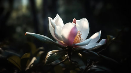 Magnolia flower blooming in soft light with delicate petals and vibrant center showcasing the beauty of nature