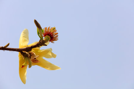 Beautiful yellow magnolia flower blooming in garden