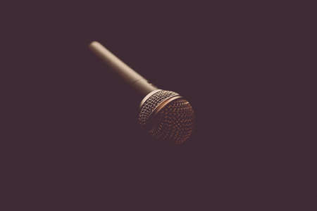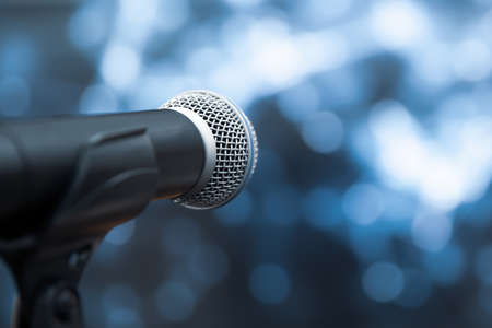 Public speaking backgrounds, Close-up the microphone on stand for speaker speech presentation stage performance with blur and bokeh light background.
