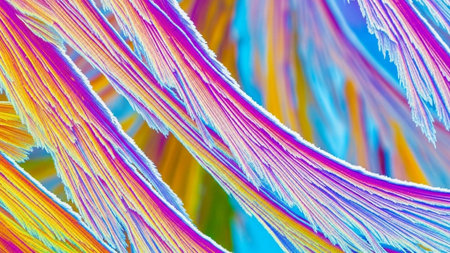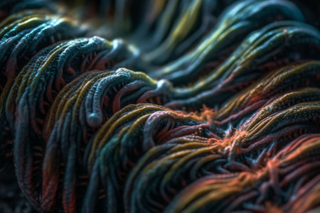 Close-up of multicolored textile fibers displaying textile texture and vivid colors. That the image is generated using AI.