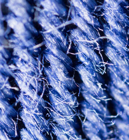 Extreme macro of polyester stable fiber on blue background. Selective focus, shallow depth of field. Abstract dreamy background