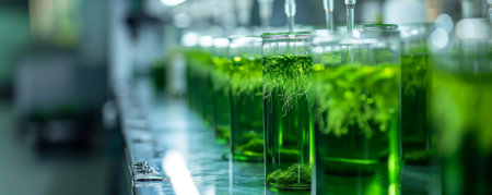 Rows of Green Liquid-Filled Test Tubes for Scientific Experiments