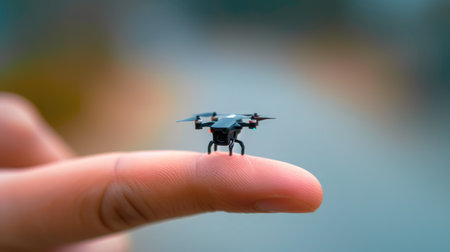 Advanced Micro Drone on Finger, Extreme Close-Up