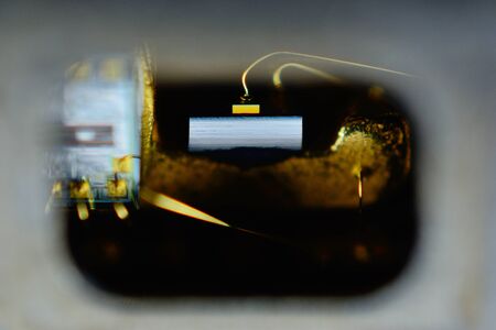 Smartphone camera module in repair shop, macro shot