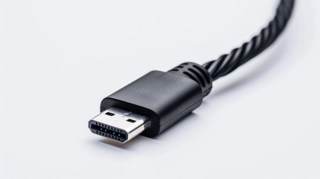 The image features a USB-C cable isolated on a white background. The cable is prominently displayed, showcasing its USB-C connector at the end. The white background enhances the visibility of the cable, making it the central focus of the image.