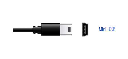 Black usb cord for transferring digital data on a white background. Digital data transmission technologies. Computer connection. Charging mobile devices. USB cord for charging the phone.