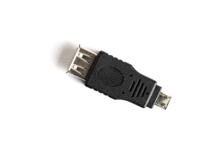 Smartphone OTG Connector on a white background, close-up, isolate, top view