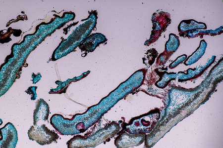 Microscopic macro close-up shot scientific research epithelial tissue biological anatomical capture of human animal plant cells muscles osmosis. Detailed microscope view nature organism body structure