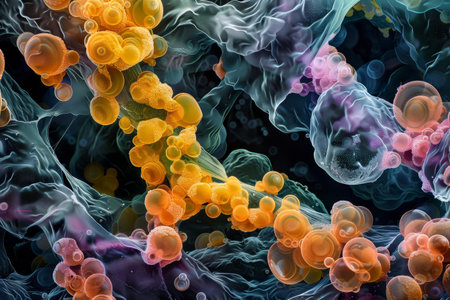 Vibrant Microscopic Cells Close-Up - Abstract Biological Background.