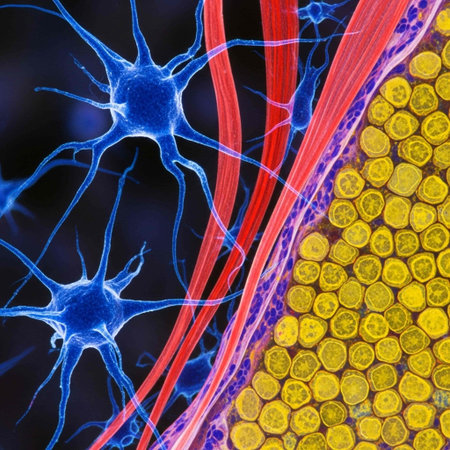 Abstract macro illustration of neural network structure and pathways in the brain, showing intricate details of neurons, synapses, dendrites and axons. AI-generated content