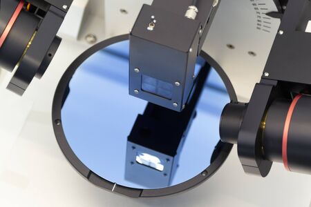 Ellipsometer tool in a laboratory. Ellipsometry is an optical technique for investigating the dielectric properties of thin films.