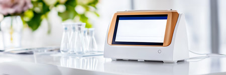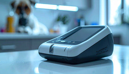 In a brightly lit, modern veterinary clinic, a state-of-the-art diagnostic device sits ready for use. This essential tool represents the pinnacle of animal healthcare technology, offering precise readings to help veterinarians ensure the well-being of beloved pets.