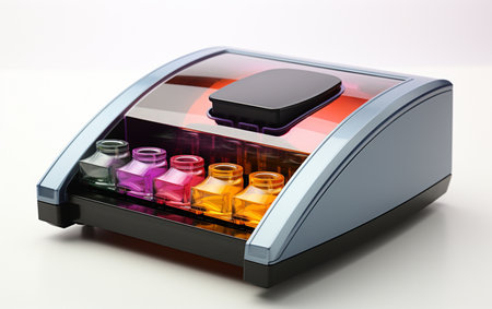 A close-up view of advanced laboratory equipment with colorful backlighting, emphasizing technological innovation in a modern research facility dedicated to scientific analysis and medical diagnostics.
