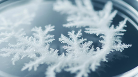 Petri dish showing intricate microbial growth under a microscope light, perfect for research or educational purposes, with copy space