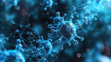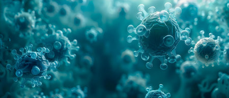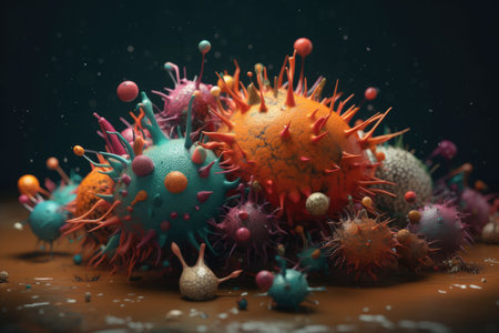 Colorful viruses engage with cells in a dynamic environment, highlighting their intricate interactions and potential impacts on health.