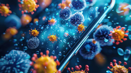 A cell phone is covered in virus and bacteria..