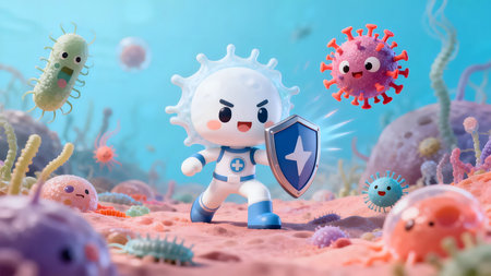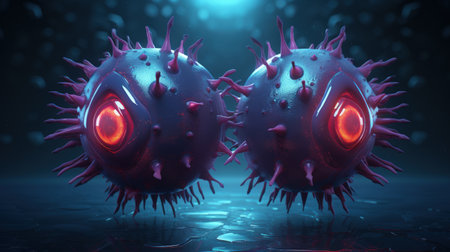 Cartoon characters cute, funny evil viruses, whimsical and infectious, creative and humorous animation of infectious microorganisms in comical and imaginative scenarios