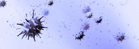 Coronavirus microscope 3D virus illustration dark blue background with copy space