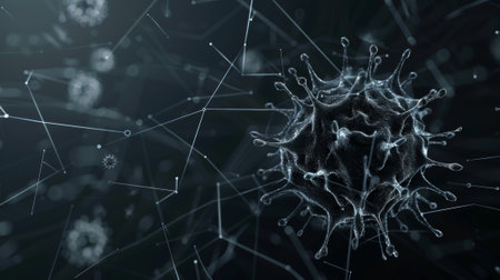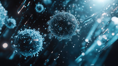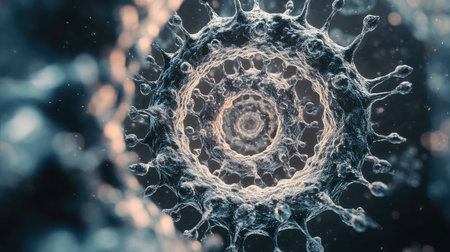 Detailed close-up view of a virus in a dark environment indicating microbial activity